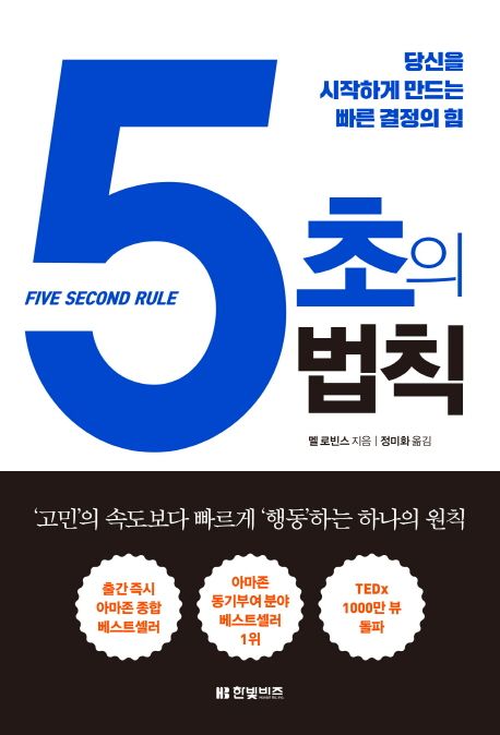 TEDx 인기 강연자이자 베스트셀러 작가인 멜 로빈스가 『5초의 법칙』을 통해 어떤 상황에서도 더 이상 결정을 두려워하지 않고 지금 시작하게 만드는 방법과 스스로의 영웅이 되는 용기를 전한다. 저자는 우리에게 '5초의 법칙'을 통해 내면의 목소리에 집중하고 행동으로 나타나게 만드는 특별한 방법과 증언을 보여준다.